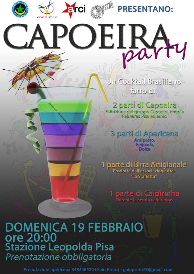 DALLE 20:00 CENA DI AUTOFINANZIAMENTO A CURA DELL’ASSOCIAZIONE CULTURALE ITALO BRASILIANA E CAPOEIRA PARTY