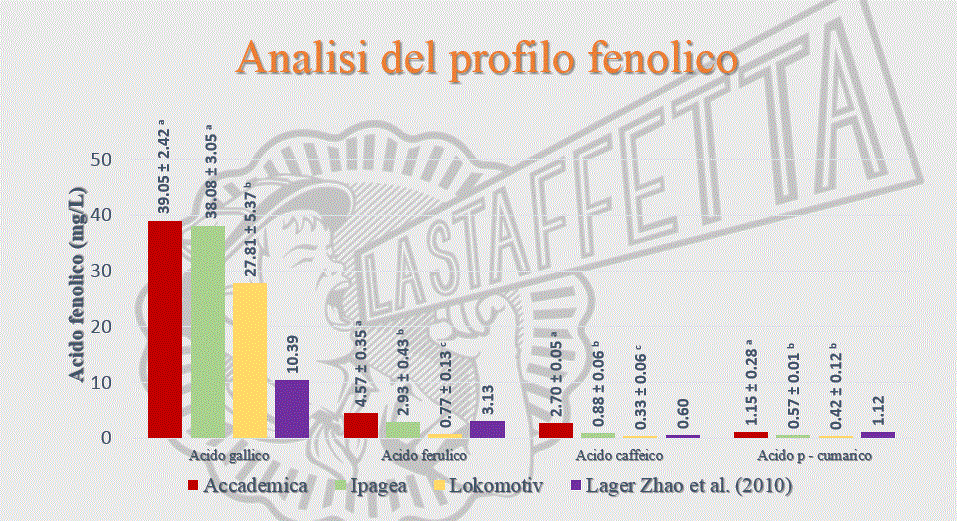 In secondo luogo si è proceduto con il dosaggio delle molecole ad attività antiossidante presenti nei campioni in esame, valutando come queste varino in funzione dello stile e della strategia tecnologica adottata e paragonando, allo stesso tempo, i risultati ottenuti con dati sperimentali relativi a studi condotti su birre industriali e sul vino.