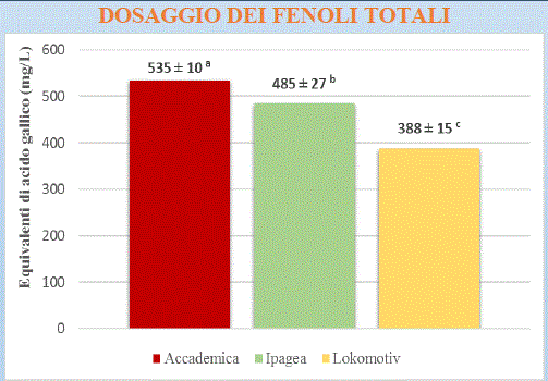 • Dosaggio dei Fenoli totali (equivalenti di acido gallico mg/L): 535